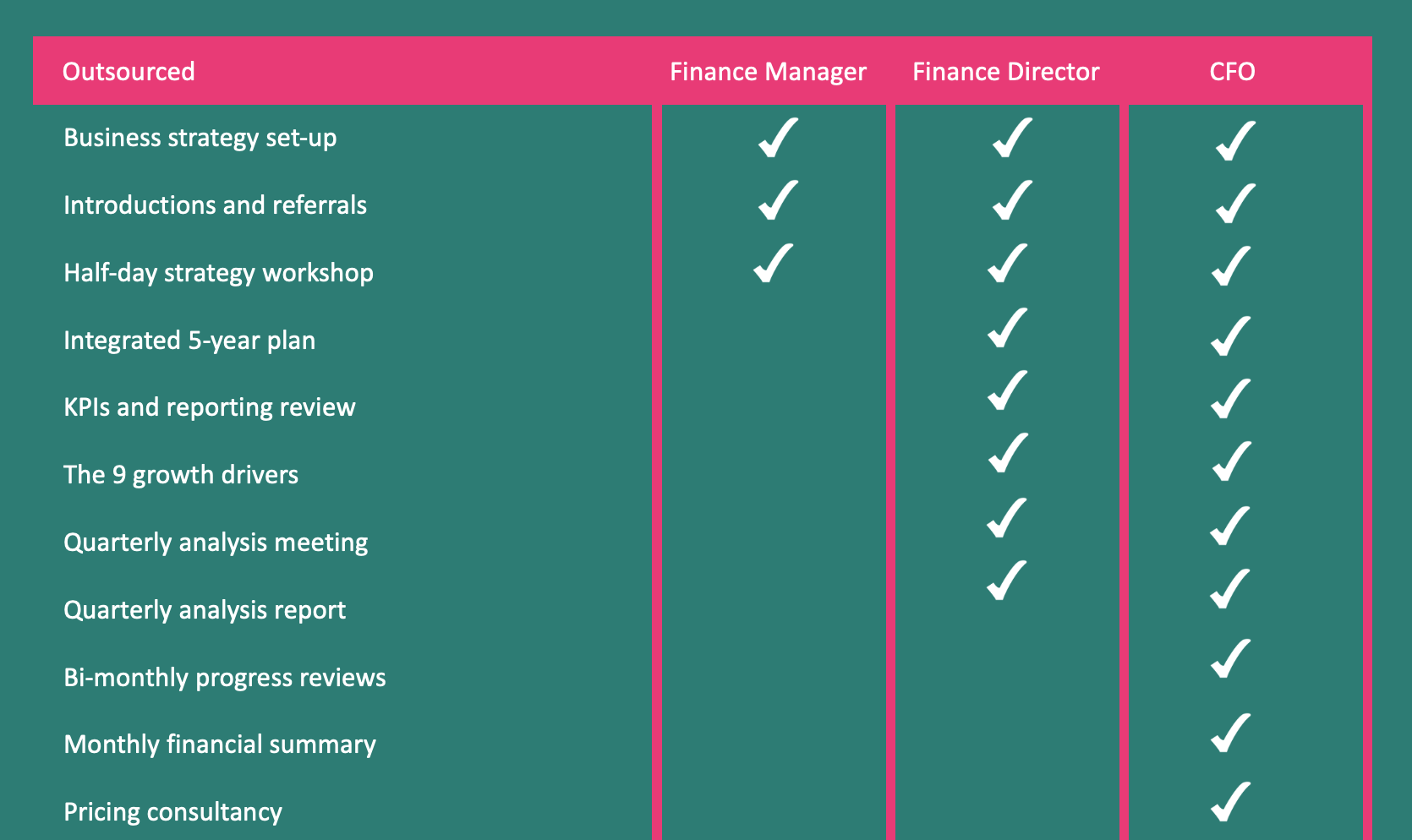 Every business is unique, which is why every outsource package we put together is different to. Depending on the size of your operation and how much support you need, we have three tiers of fractional financial capability.